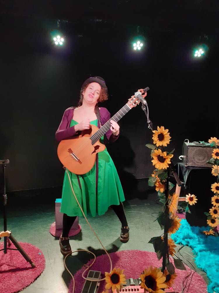 Une piste de danse où musique, texte, chorégraphies participatives et fantaisie fusionnent dans un cocktail pétaradant. Telle une professeur de Zumba, Anne-laure Carette transmet les mouvements aux enfants. De l’imitation à l’improvisation, elle partage les chorégraphies avec humour sur des compositions originales croisant musique acoustique et électronique. Les basses et beat puissants sont au rendez vous, et l’accordéon vient se poser en live pour délivrer des improvisations.
