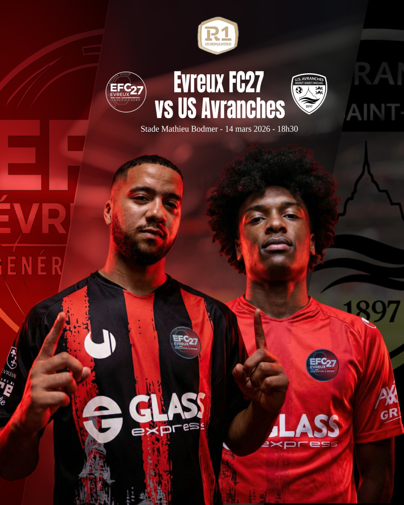 Dans le cadre du championnat de Régional 1, l’Évreux FC 27 recevra l’US Avranches le samedi 14 mars 2026 à 18h30 au stade Mathieu Bodmer.