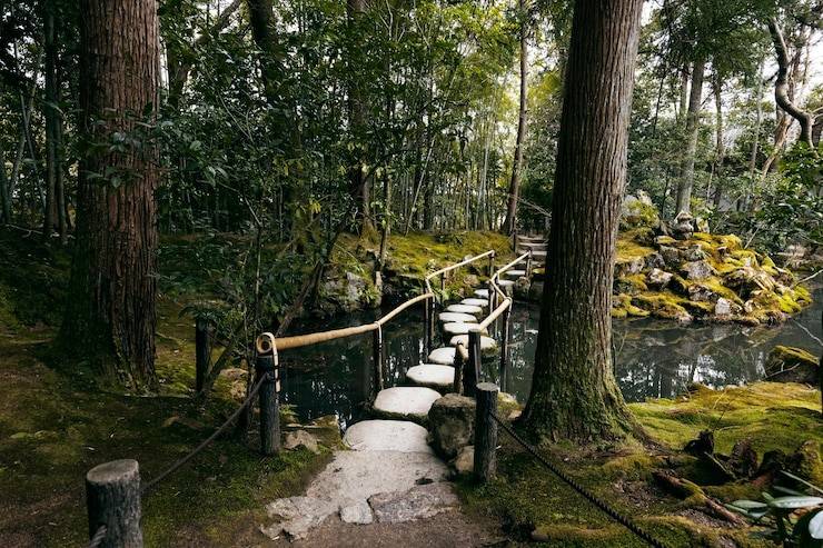 Images du paradis et lieux de méditation, les jardins peuvent prendre de nombreuses formes : jardin-villa des aristocrates à l’image du paradis, jardin de contemplation du bouddhisme, jardin de sable de la secte zen, jardin-vase d’agrément des citadins, jardin de thé prônant la rusticité et l’humilité…