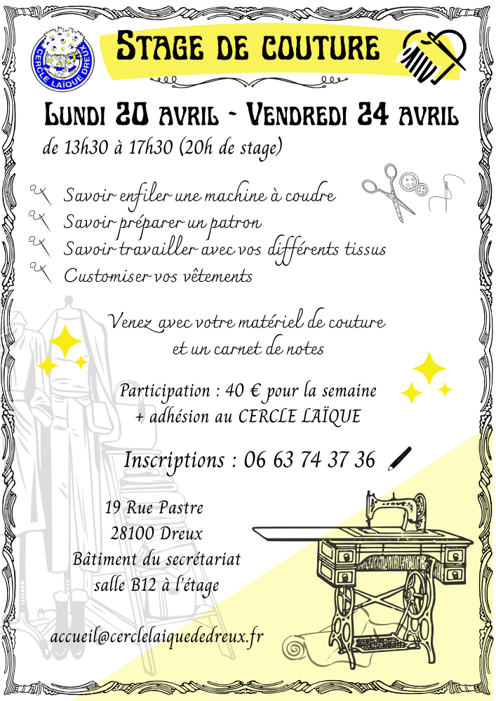 TARIF 40 € HORS ADHESION. Pour les non-adhérents du Cercle Laïque une adhésion annuelle de 30 € va être demandée. Cette adhésion donne l'accès à toutes les activités du Cercle.