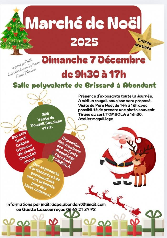 Tirage au sort de la tombola de Noël à 16h30 (vente de ticket sur place)
