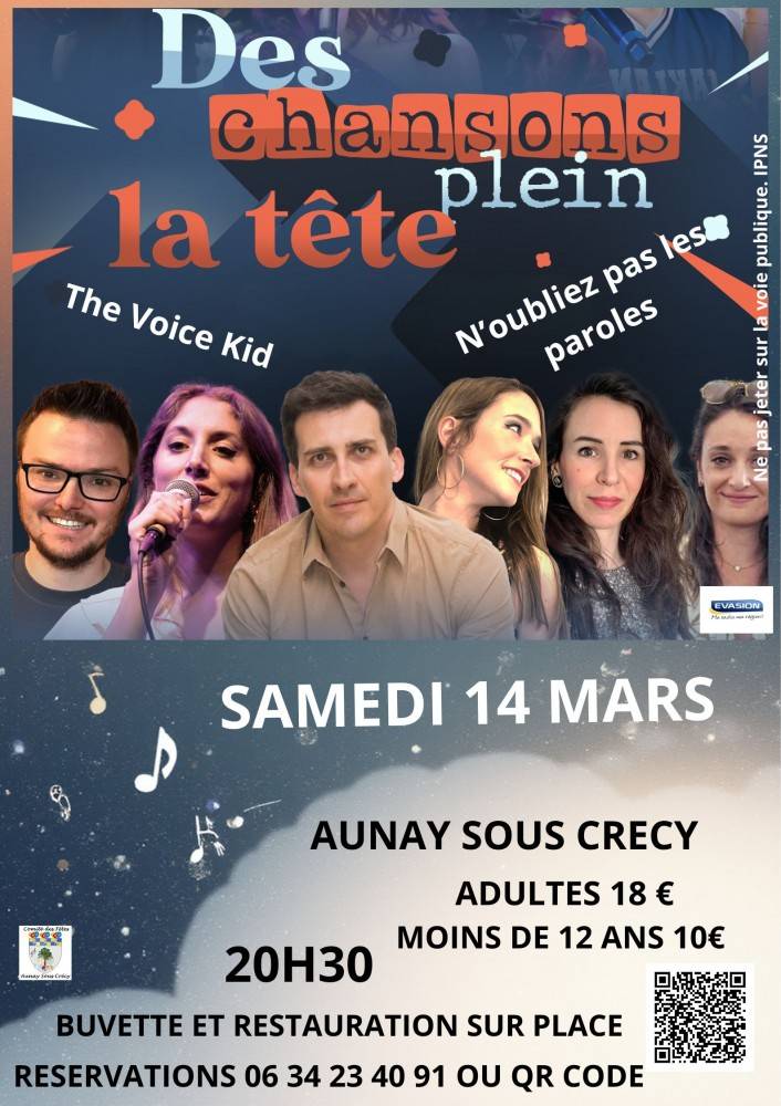 Ils sont issus d’émissions musicales télévisées célèbres, ils aiment la chanson Française et ont décidé de se rassembler pour présenter un concert à Aunay sous Crécy le Samedi 14 Mars 2026 – Salle des Fêtes à 20h30