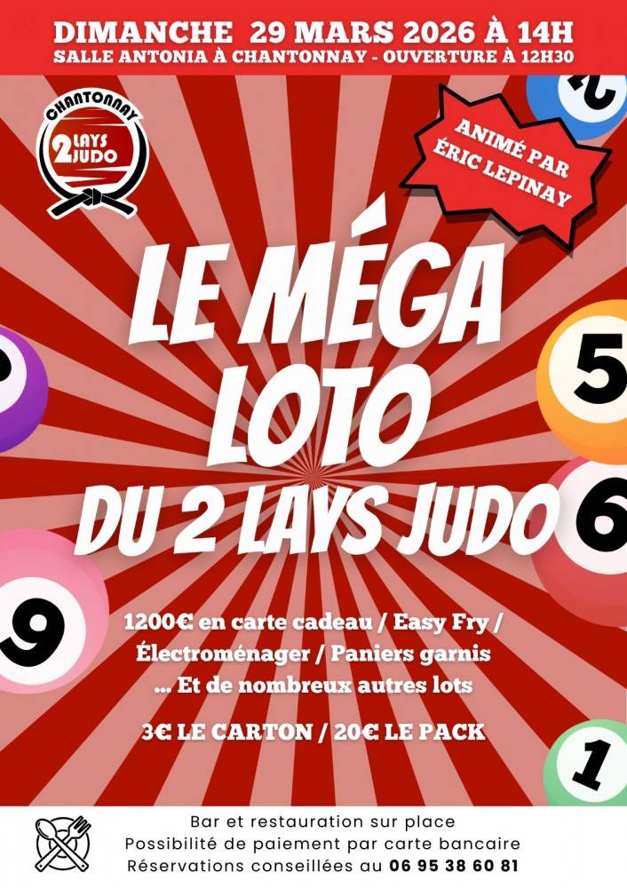 Loto des deux lays judo, ouverture des portes à 12h30 début du Loto 14h00